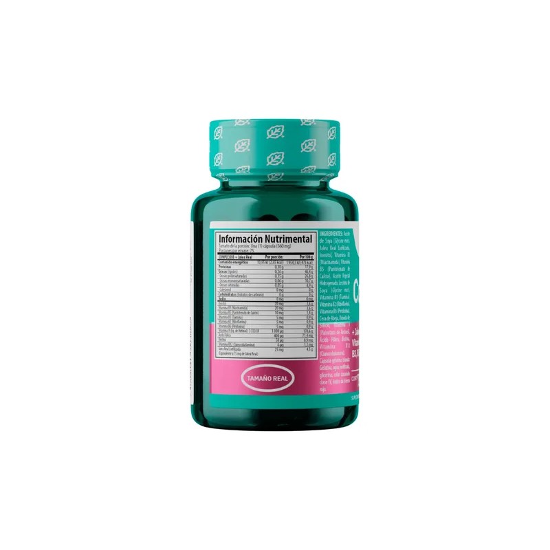 INGREDIENTES: Aceite de Soya (Glycine max), Jalea Real Liofilizada, Inositol, Vitamina B3 (Niacinamida), Vitamina B5 (Pantotenato de Calcio), Aceite Vegetal Hidrogenado, Lecitina de Soya (Glycine max), Vitamina B1 (Tiamina), Vitamina B2 (Riboflavina), Vitamina B6 (Piridoxina), Cera de Abeja, Dióxido de Silicio, Vitamina A (Palmitato de Retinol), Ácido Fólico, Biotina, Vitamina B12 (Cianocobalamina). Cápsula gelatina blanda: Gelatina, agua purificada, glicerina, color caramelo clase IV, óxido de hierro rojo.
