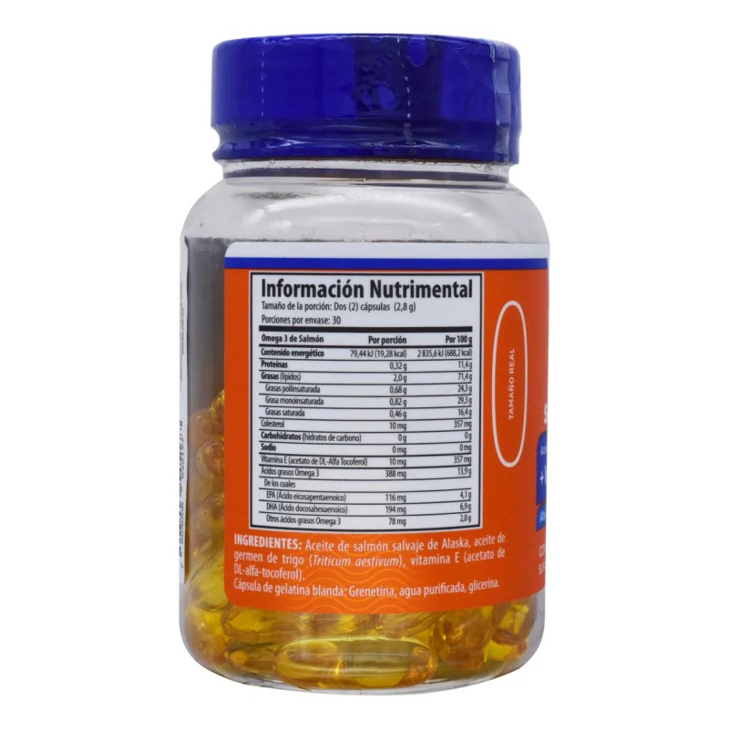INGREDIENTES: Aceite de Salmón Silvestre de Alaska. Cápsula blanda: Gelatina, agua purificada, glicerina, metilparabeno, propilparabeno.