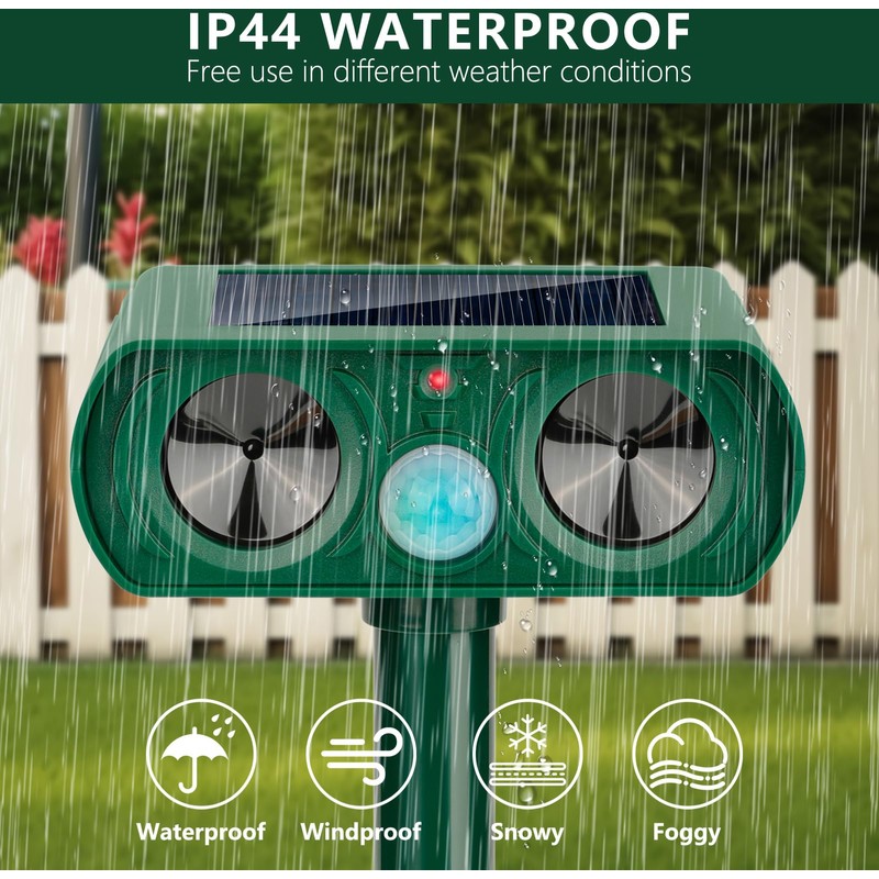 - 【New Version Upgrade in 2025】This Solar Animal ultrasonic repellent features state of the art ultrasonic technology which creates a powerful ultrasonic wave,accompanied at the same time by an alarm sound. Ultrasonic animal repellers scare them away from your house, garden, yard and stop animals from ravaging your favorite plants.