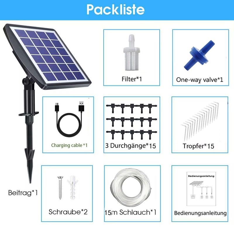 Effiziente solarbetriebene Bewässerung: Unser Solar- Tropfbewässerungssystem wurde entwickelt, um Ihnen Zeit und Mühe bei der Pflege Ihres Gartens zu ersparen. Mit regelmäßigen Bewässerungseinstellungen und der Möglichkeit, bis zu 70% Wasser zu sparen, ist es eine umweltfreundliche Lösung für alle Pflanzenliebhaber.