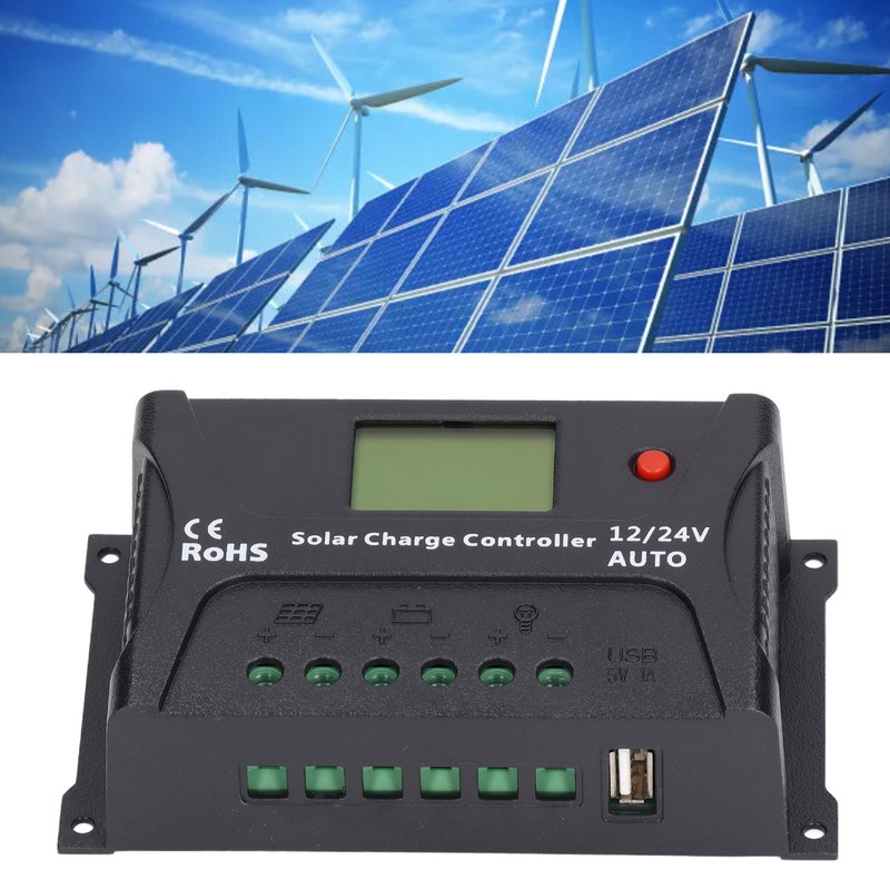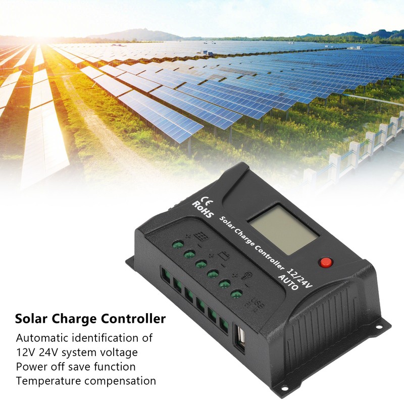 Solar Charge Controller PWM Smart 20A 12V 24V Automatic Identification LED Display with USB
