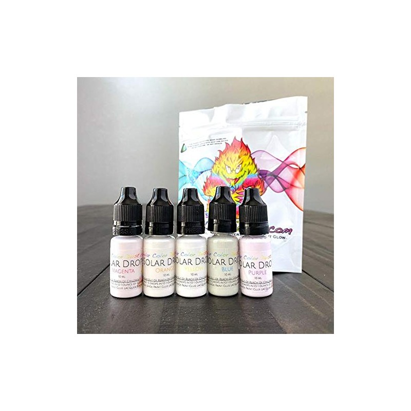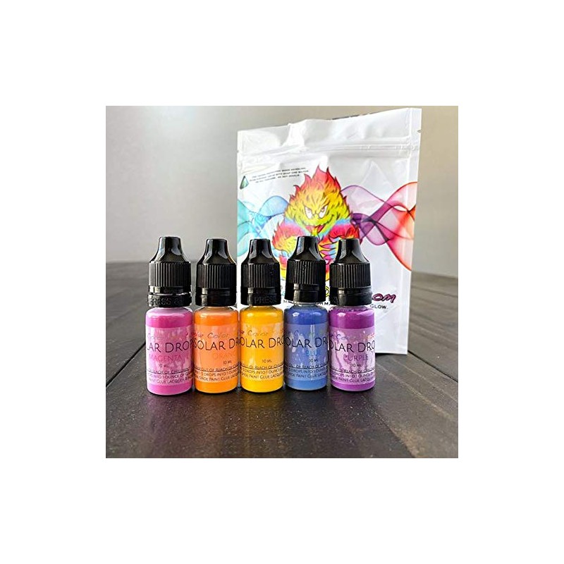Solar Color Dust, Solar Drops - White to Rainbow 5pk, 10ml Dropper Bottles in Magenta, Orange, Yellow, Blue and Purple