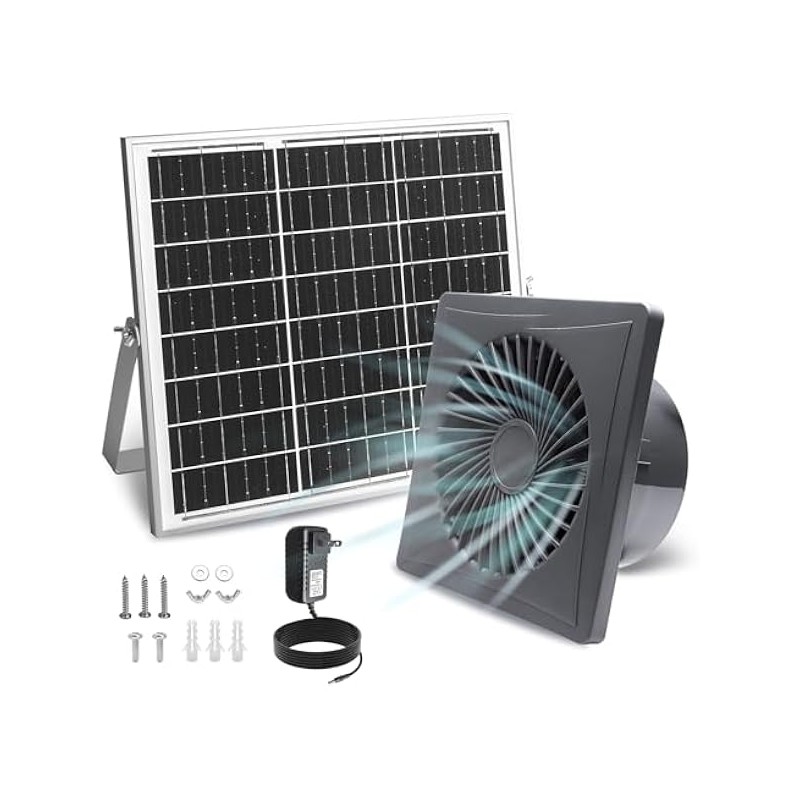 Solar Exhaust Fan, 25W Solar Panel + 8" Ventilation Vent Fan, with Power Adapter, Anti-backflow Valve, High Speed Solar Powered Exhaust Fan with Bracket for Shed, Chicken Coop, Greenhouse, Dog House