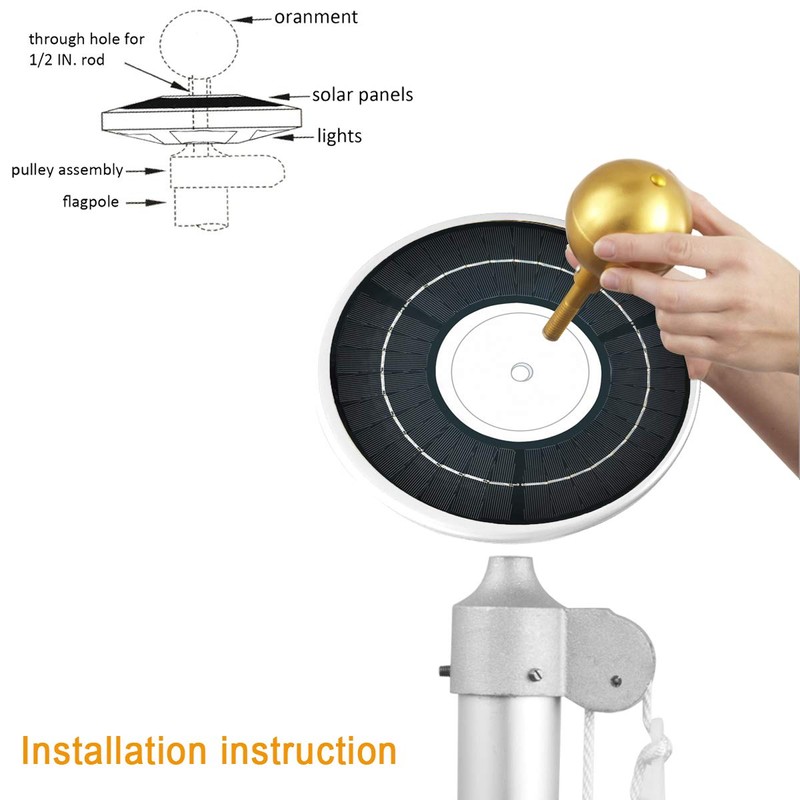 This listing is for the solar flag light only. No ball, bolt, ornament, flag, or flag pole is included. Props in product images are for demonstration and application purposes only.
