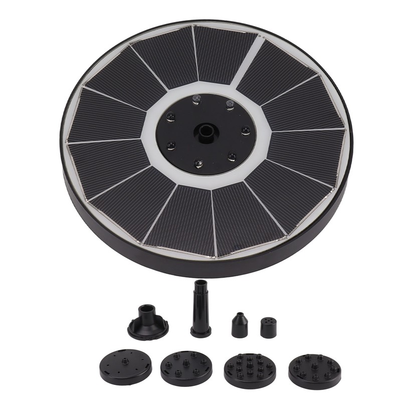 Solar Fountain Light with 8 Nozzles 3.5W 900mAh Colorful Powerful Solar Bird Bath Fountains for Bird Bath Garden Black Nozzle