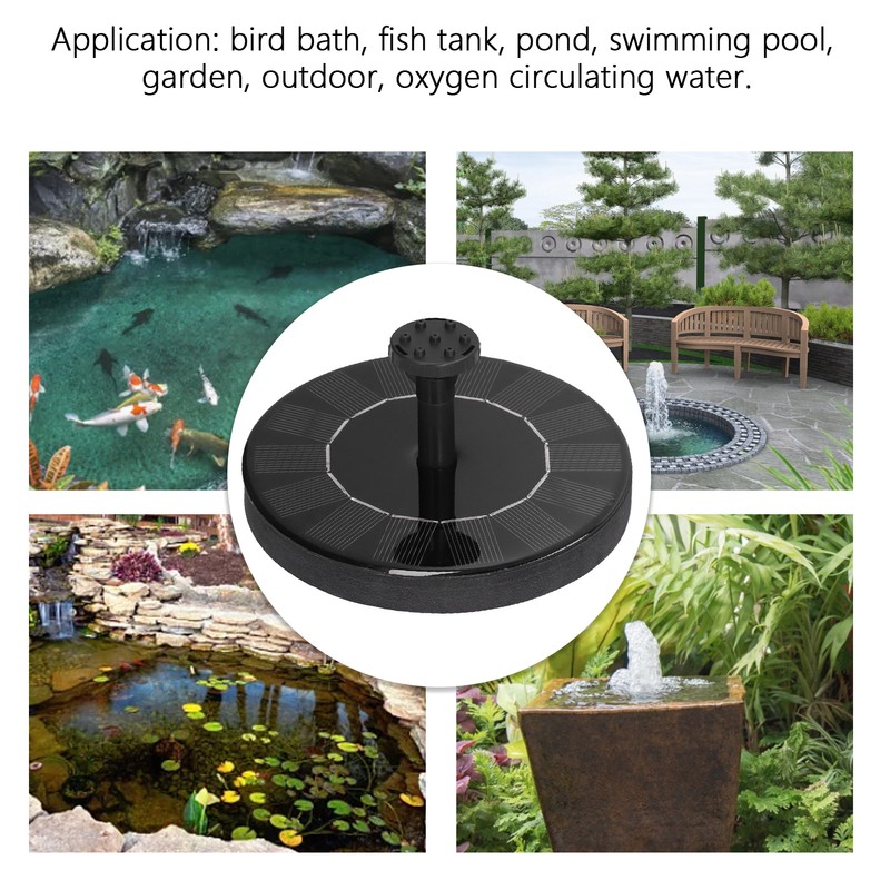1、When the solar panel receives sufficient sunlight, the water pump will start within 3 seconds without any power battery. 2、With good working performance, the spray height is about 30‑‑50cm / 11.8‑‑23.6in, different nozzles, the spray height will be different. 3、It adopts monocrystalline silicon solar panels and can freely combine nozzles, making it safer and more reliable to use. 4、The solar fountain is driven by solar energy and runs automatically, so you don't need to spend too much time looking after it. 5、Suitable for bird baths, fish tanks, pond, swimming pools, gardens, outdoors, oxygen circulating water.