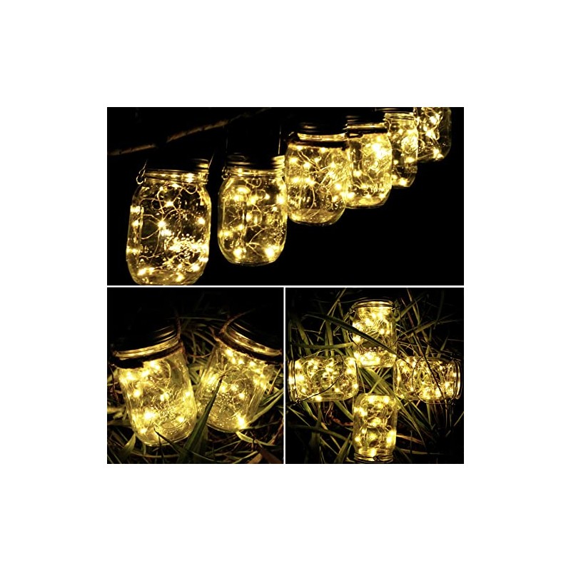 - 【High Quality Fairy Lights】- Very popular Mason Jar String fairy firefly Lights Lid. Make your discarded mason jars beautiful lights to decorate your surroundings. Best idea for decorations around your apartment. Just put it on shelves,tables,porches, trees,patios and pergolas.A great gift to children,lovers,family and friends.