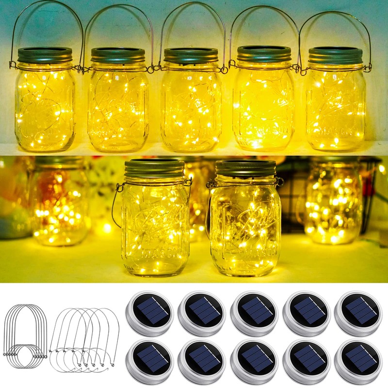 - 【Pack of 10 Lids/Hangers Kit】- What you get - Pack of 10 units of SmilingTown Mason Jar LED String Lights Lid and 10 Hangers. A Valuable 10 kit to order. LED lights can last 50,000hours under regular using. Important: JARS NOT INCLUDED.