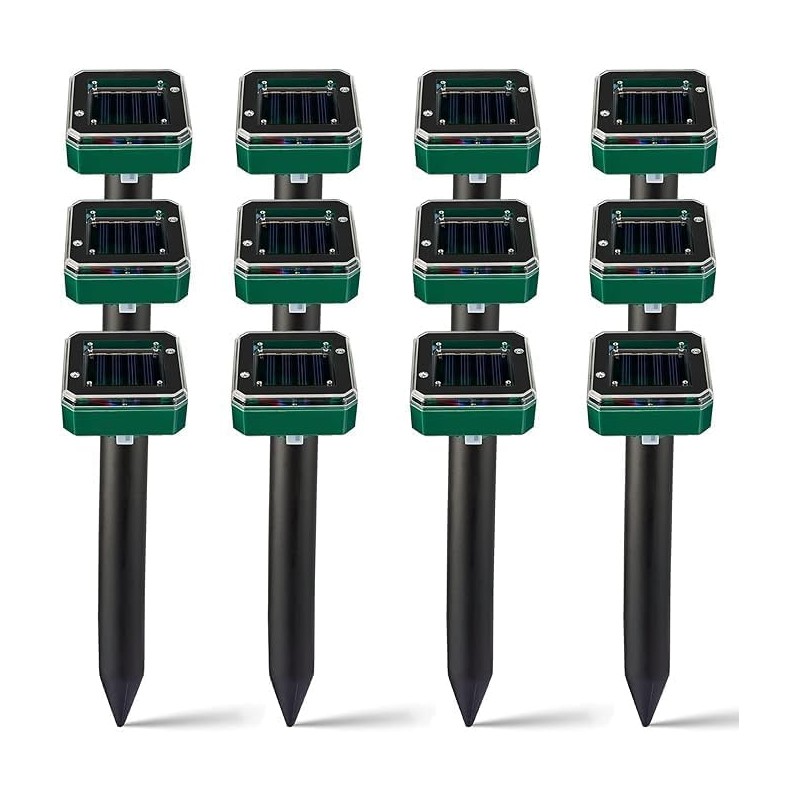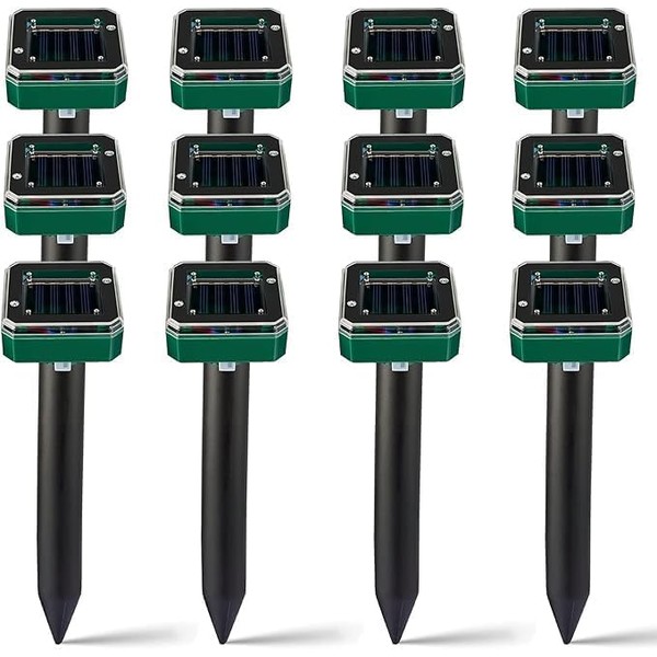 Solar Mole Repellent, 12 Pack Ultrasonic Mole Repellent Solar Powered, Waterproof Vole Gopher Repellent for Garden & Yard (SMR(1)) (Green12)