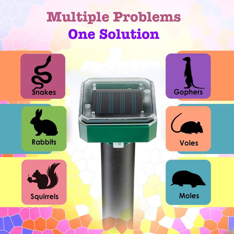 - 【SAFE TO USE】🐾 The Solar Mole Repellent emits low-frequency pulses lasting 3-4 seconds, every 20 seconds, to effectively deter moles and other pests from entering your garden or yard. 🌻💪 It’s completely safe for people, pets, and the environment—no harm done, just effective protection! 🐶