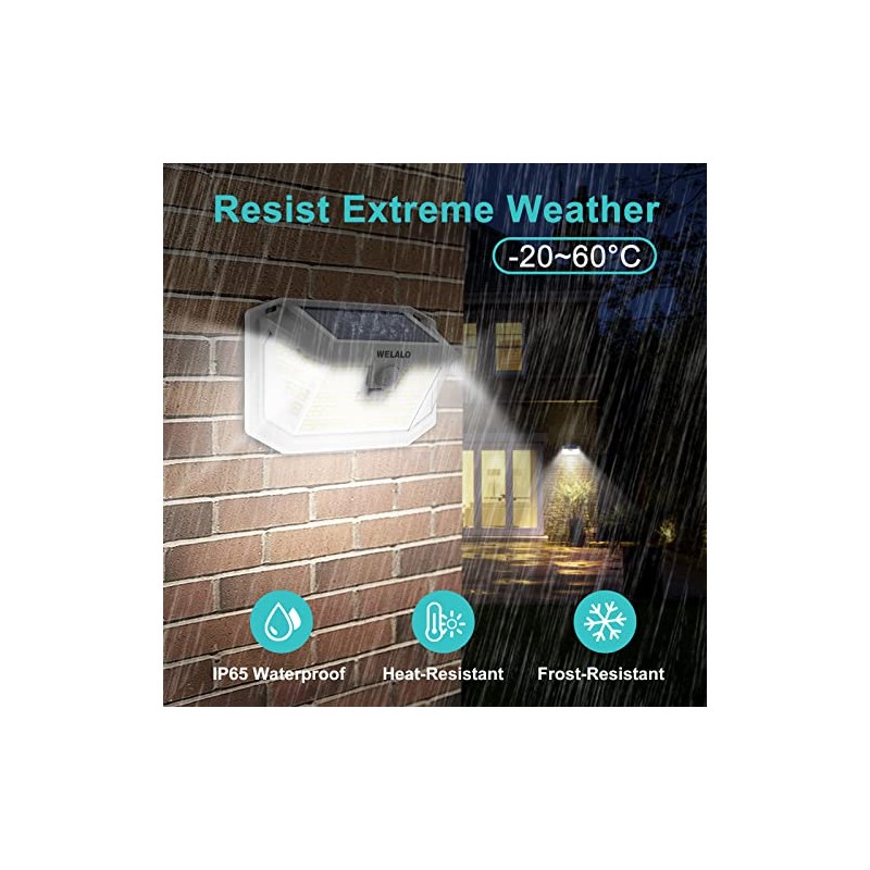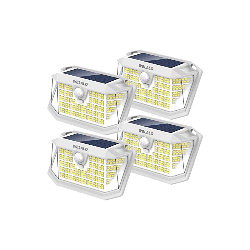 - Cool White 188 LED Solar Motion Lights: Our WELALO 188 LED solar motion lights outdoor with 270° wide angle lighting, providing a super bright for a wide area and it can illuminate longer, and coordinate well with all different styles of decoration.