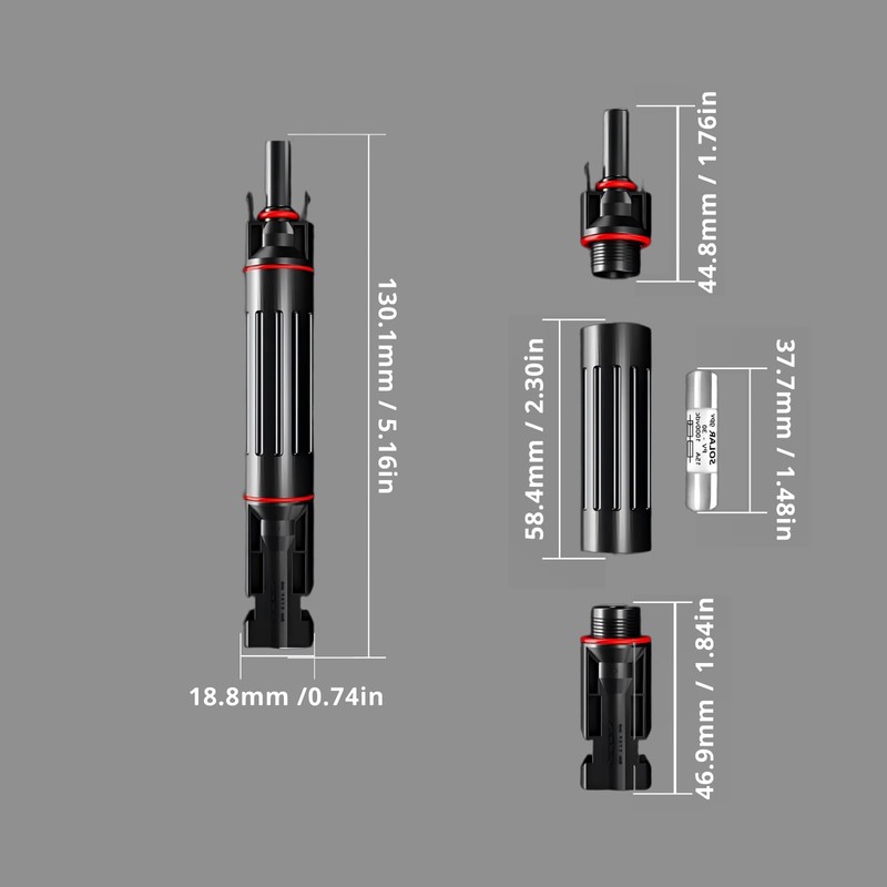 - 15A Solar Panel Fuse Connector IP68 Waterproof 1000V in-line Fuse Holder Male and Female Connector Waterproof in-Line Fuse Holder