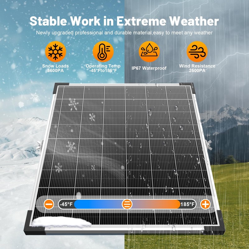 - 【Upgraded Smart Charge Controller】Our solar panel kit system is equipped with a new upgraded model smart charge controller, advanced smart charge controller algorithm can improve charging efficiency, and the tracking efficiency is as high as 99%, the peak conversion efficiency is as high as 98%, which improves the utilization rate by more than 25% compared to the solar panels in the market.