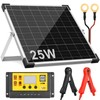 Solar Panel Kit 25W 12V Monocrystalline, Solar Battery Trickle Charger Maintainer, Solar Battery Maintainer + Upgrade Controller + Adjustable Mount Bracket, Best for Boat Car RV Motorcycle