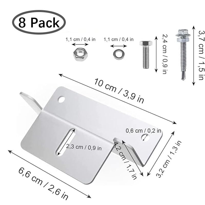 Solar Panel Mount Assembly, Solar Panel Roof Mount Z Brackets, Solar Panel Z Holder with Nuts and Screws, Boats, for Caravans, Walls, Roofs (Pack of 8)