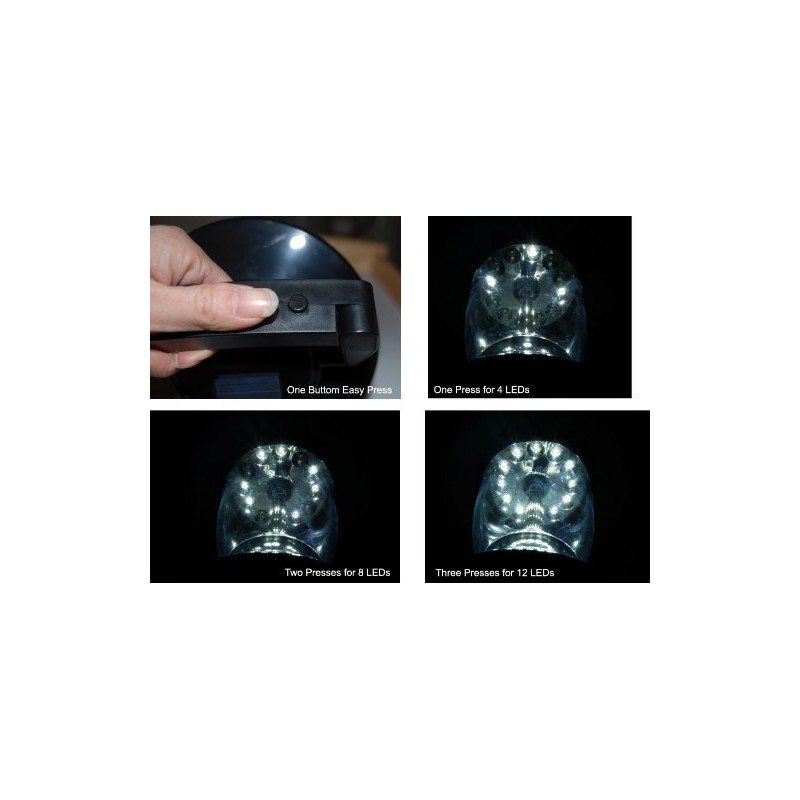 - Less brightness for longer lighting time. Using 4 LEDs it lights up for 15 hours; 8 LEDs for 10 hours, and 12 LEDs for 5 hours.
