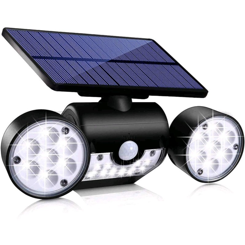 **Solar motion sensor lighs** **Warm Tips:** 1.Cover the solar panel on the top of the light with your hand or put it upside down, then use the pin insert the on/off hole to PUSH the switch to turn on the light.Please confirm the switch is under "on" status so that the light could be charged normally 2.In order to maximize the lighting effect, please make sure that the solar outdoor lights is full of sunlight electricity.It's important to install the light in a location that away from the shade caused by trees, buildings etc. 3.That whether the solar outdoor lights can produce the best lighting effect or not depends on sunlight intensity, geographical location, weather conditions, seasons and other conditions. **Specifications:** LED Quantity: 30 LED Sensing Angle: 360° Sensing Distance: 5-8m/16.4-26ft Ideal Mounting Height: 2m/6.5ft Size: 7.9 x 3.5 x 2.4 inches Brightness: 800lm Li-ion Battery: 3.7V 2000mAh **Product description:** (1).360° Adjustable Angle Solar motion ligh with Unique Wide Angle Design Outdoor Solar Light which create a wider range of luminosity. The maximum lighting angle can reach 270 degrees.The outdoor solar lights can be rotated independently and flexibly to adjust any angle you want. (2).The solar security lights stays off and charges automatically during the daytime, it will turn on automatically and stays at low-consumption DIM mode whole night, only when movement is detected,it will turn to brighter mode. (3).Simple Installation This solar motion sensor light can be mounted on the wall with provided wall plug and screws in seconds, no cable or wire necessary.