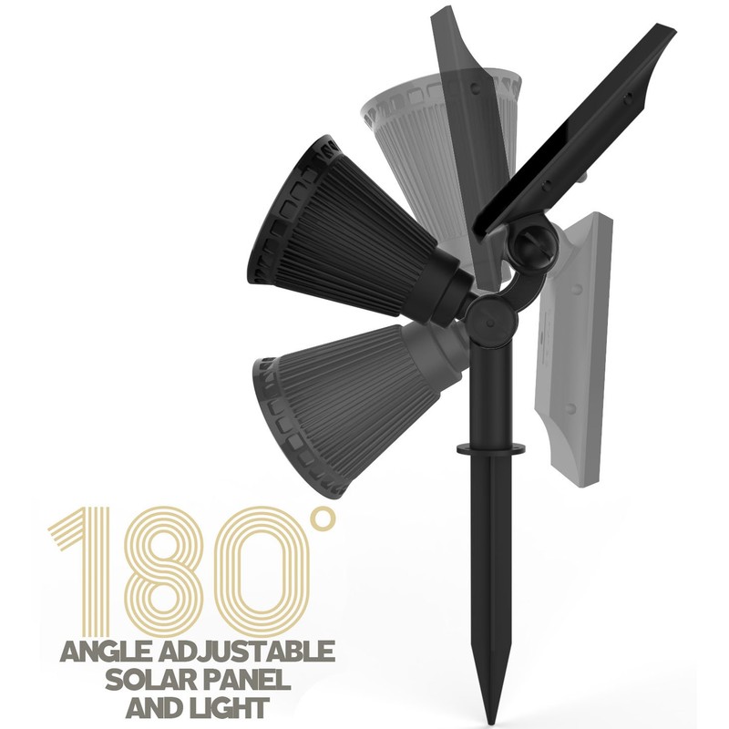 - Solar powered all-weather spotlight; rugged and durable; waterproof and heatproof.