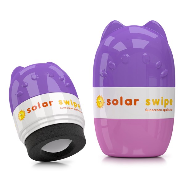 Solar Swipe Sunscreen Applicator for Kids and Adults, Portable, Washable, Easy on the Go Sunscreen Application for Any Age and Skin (Purple Pink)