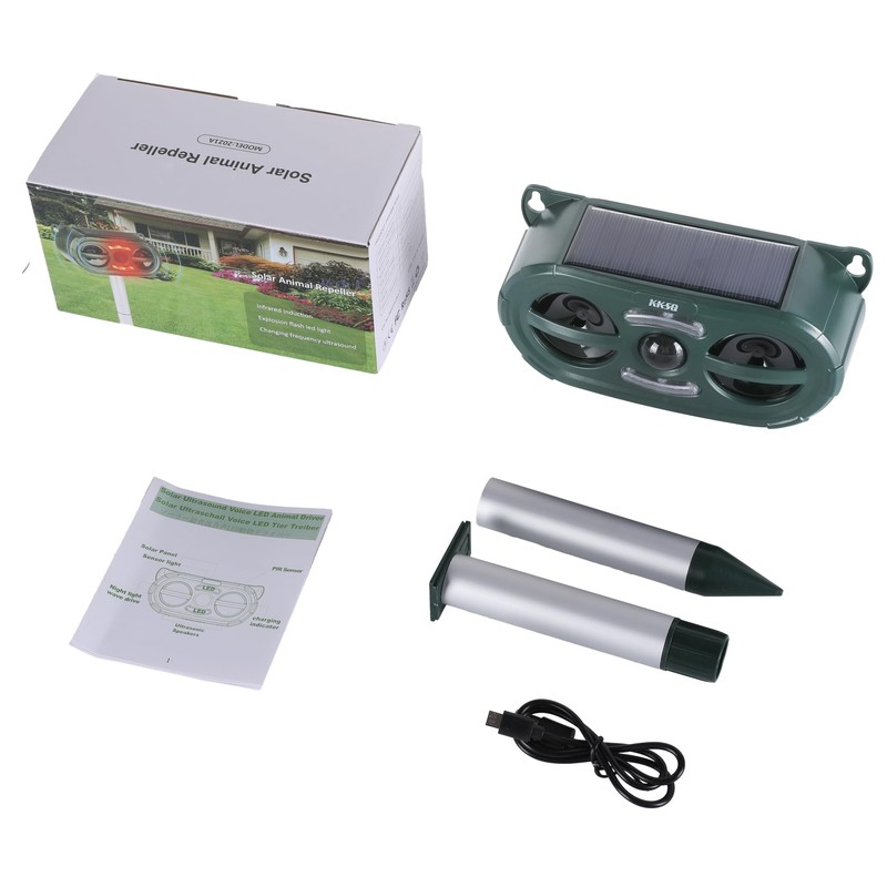 - 【Solar/USB Powered & IP55 Waterproof】 Powered by a high-efficiency solar panel (High-performance Lithium battery has been embedded inside with PCB board, not in the battery box) or USB charging, this repeller ensures continuous operation in any weather. Its IP55 waterproof rating guarantees reliable performance during rain, snow, or extreme conditions, making it durable for long-term outdoor use.
