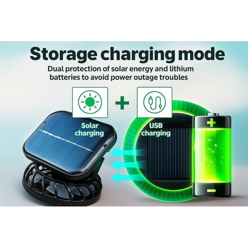 - ✅【ADVANCED DUAL SOLAR FANS】Two powerful, removable fans powered by built-in solar panels provide instant relief, circulating air directly to your face for a refreshing escape from the heat. On cloudy days? Simply plug in via USB for uninterrupted performance – eco-friendly and hassle-free.