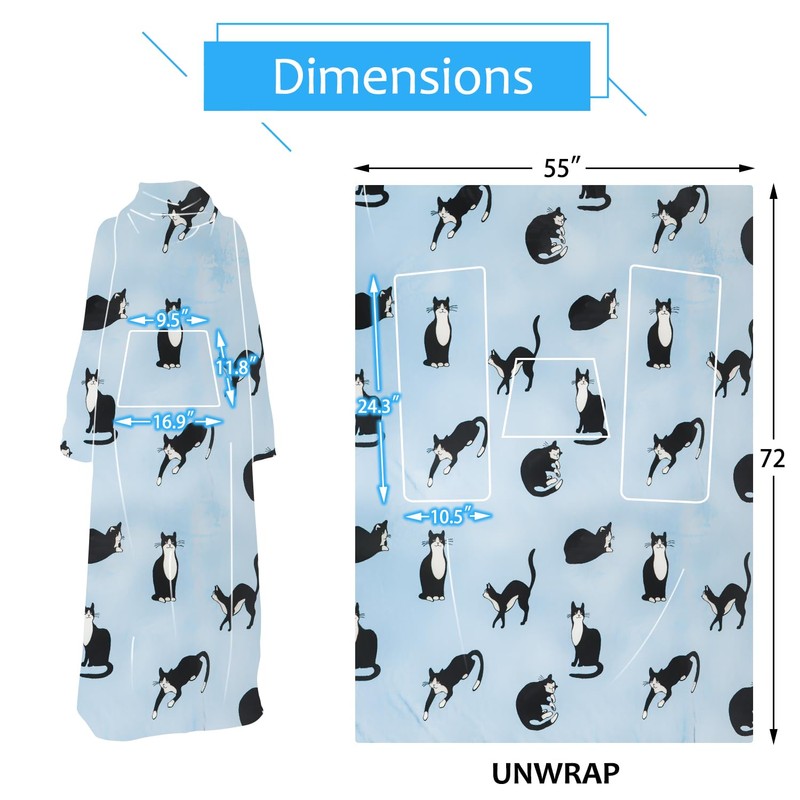 Solaris Wearable Cat Pattern Blanket with Sleeves, Super Soft Warm Snuggy Body TV Throw Blanket for Home Office Lounge, Cat Gift for Adult Women Men