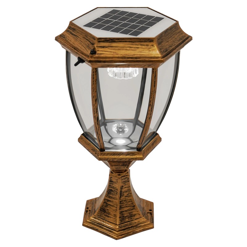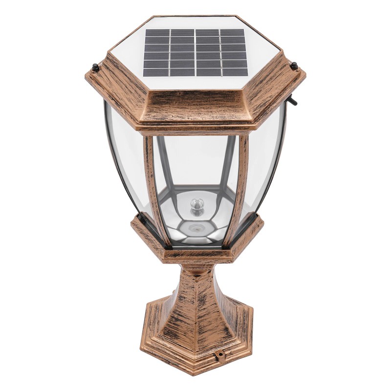 SolarPowered Retro Pillar Light Glass Lantern Garden Outdoor Yard Gate Post Lamp