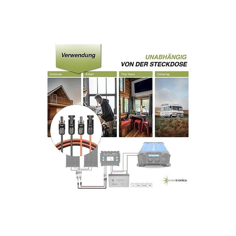 • ?? ?????????????? ?????????? - SOLARTRONICS Photovoltaik Verl?ngerungskabel mit spezieller Kupfer-Verzinnung und widerstandsf?higer Isolierung bieten eine Lebensdauer von 25 Jahren gem?? EN 50618, was sie zu einer verl?sslichen Investition macht.