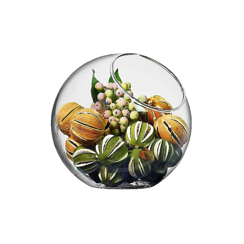 - ✓ DISHWASHER SAFE- handcrafted glass sphere cut at an angle and polished for modern look and easy access to snacks, candy, floating blossoms