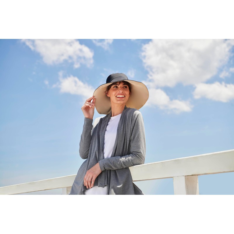 Solbari Ultra Wide Brim Sun Hat UPF50+ Packable UV Sun Protection Hats with Full Coverage Brim, Black/Beige, Small-Medium