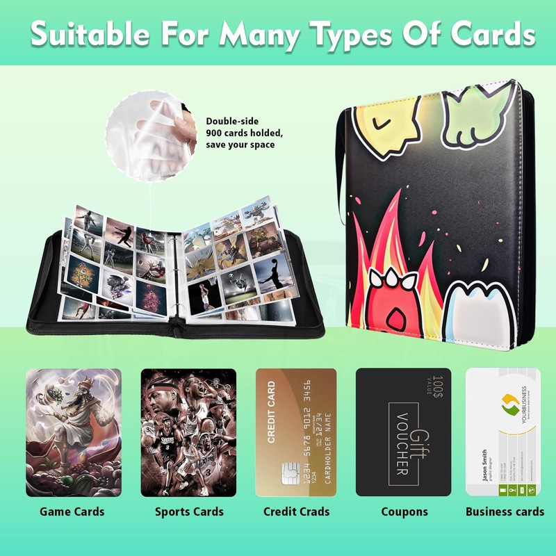 - 【Large Storage Capacity】The card binder is a double-sided generously sized 9-pocket binder (courtesy of 50 removable sleeves, each accommodating 18 cards), holding up to 900 standard 3"x4" trading cards—providing ample space to organize your collection.