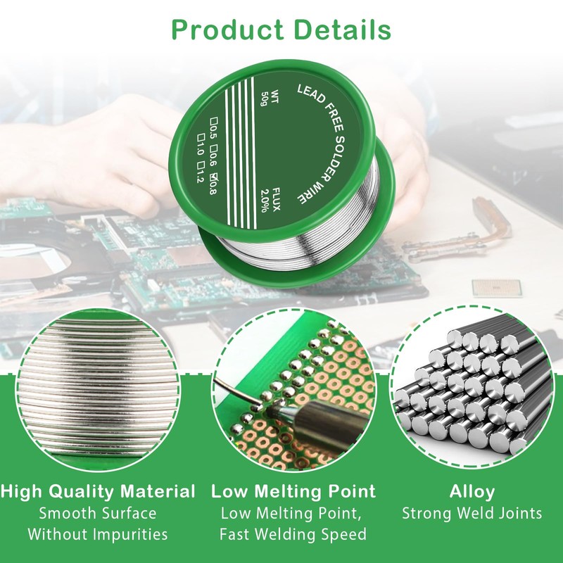 - Solder wire performance: fine wire flexibility, strong weldability, fast soldering speed, solid solder joints. Less smoke when soldering, bright and full solder joints without missoldering and other unwanted phenomena. High insulation resistance, less residue after welding.