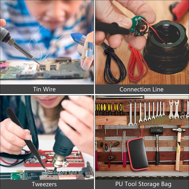 - Simple and functional desoldering pump and soldering iron holder will do great help in soldering,All can be packaged in the storage bag after soldering
