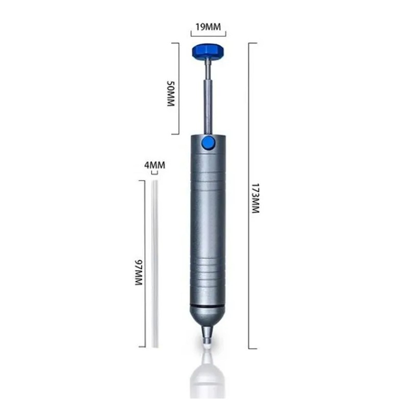 1、MAIN USE: The solder remover tool is suitable for repairing and disassembling parts, assisting in cleaning excess solder on circuit boards. 2、EASY TO CLEAN: The solder sucker body can be disassembled by slight rotation, and the suction nozzle can also be disassembled, making it easy to remove residues and extending its service life. 3、ALUMINUM ALLOY MATERIAL: Made of premium aluminum alloy material, the desoldering pump is sturdy and durable, effort saving, and automatically rebounding. 4、EFFICIENT CLEANING: The tip allows you to easily clean solder spots in corners, to improve work efficiency! 5、EASY CARRYING: Compact size and being light in weight make the solder sucker easy to carry to different scenes to use.