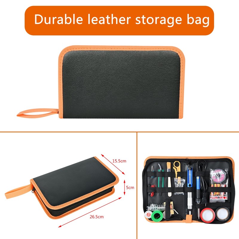 - 【16-In-1 Soldering Iron】Soldering iron kit comes with soldering iron,Desoldering Pump,Soldering Iron Tips,Soldering Wire,Soldering Iron Stand,Tweezers,PU Carry Bag,solder paste, heat shrink tubing,shaped screwdriver,etc.