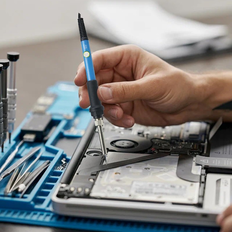 No soldering station required, just plug in and play; adjust the temperature with the button wheel on the electronic soldering iron according to your needs.