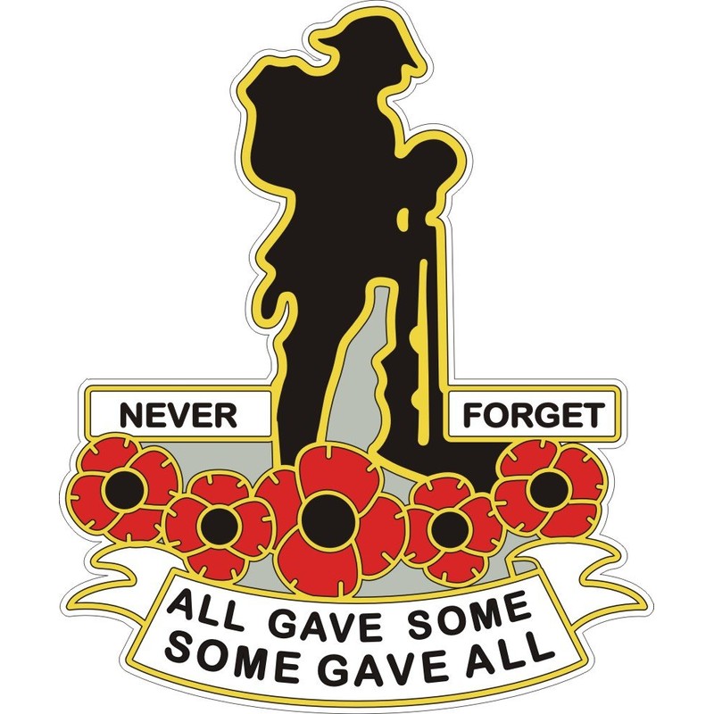 - Featuring soldier and poppies logo with wording "All Gave Some, Some Gave All"