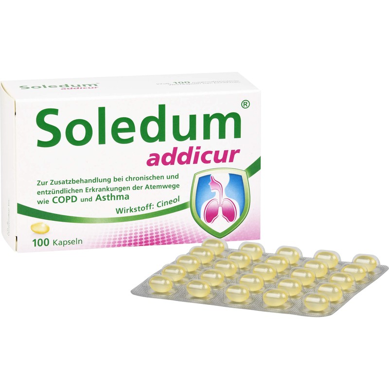 Soledum addicur Weichkapseln zur Zusatzbehandlung bei chronischen und entzündlichen Erkrankungen der Atemwege wie COPD & Asthma, 100 St. Kapseln