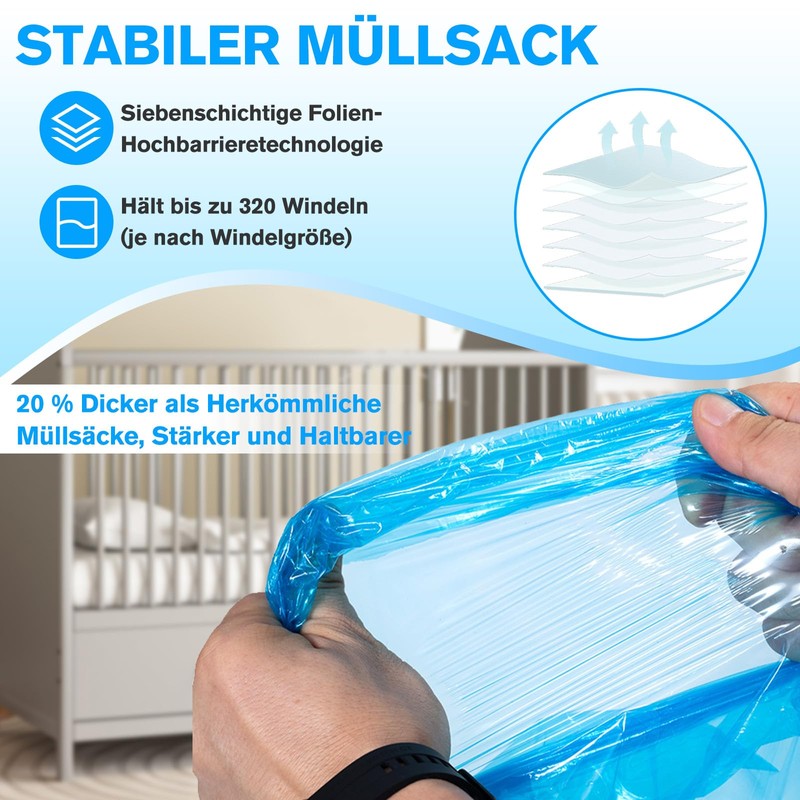 - Thickened antibacterial: our refill film nappy bin refill cassettes is made of thickened antimicrobial film technology with an international thickness of 2.5 filaments and is pressed by 7 layers of film that can effectively isolate bacteria and odour, creating a safe and hygienic cleaning environment for your family