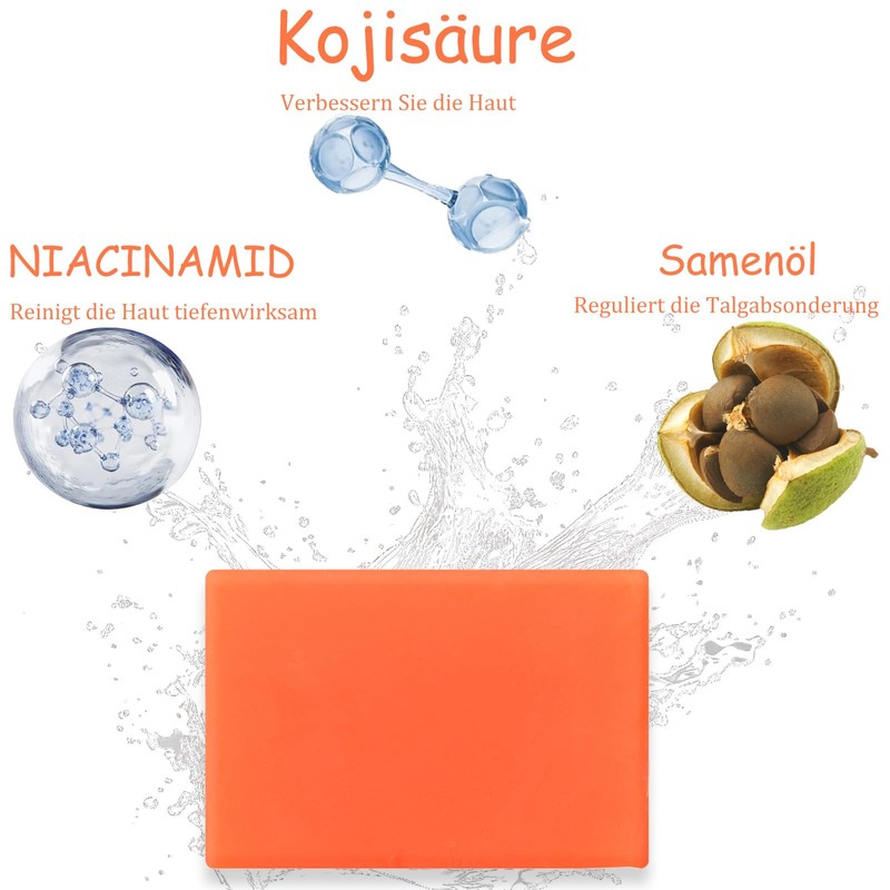 - A variety of valuable ingredients: this kojic acid soap body not only cleans and nourishes the skin, it also improves acne. Our kojic acid soap contains camellia seed oil that narrows pores and gently cleanses the skin. Our gall soap piece contains niacinamide that improves skin tone. This soap bar also contains kojic acid for better deep cleansing of the skin, removes oil and dirt and reduces the growth of acne.