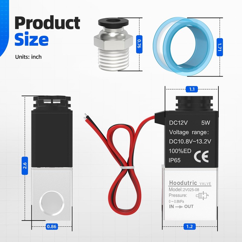 - Wider Application: This 2V025-08 solenoid valve DC12V is widely used in pneumatic, hydraulic, HVAC, automotive, medical, food processing and other industries, used to accurately control the flow of fluids and gases, to achieve automation and efficient system management to meet different needs