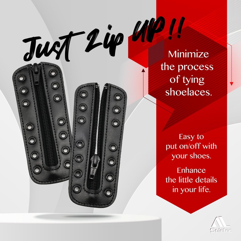 Soletec Leather Lace-in Boot Zipper Inserts for All Brands, Tieless Shoe Laces, 7 Non Isometric Black Eyelets, 1 Pair, Black