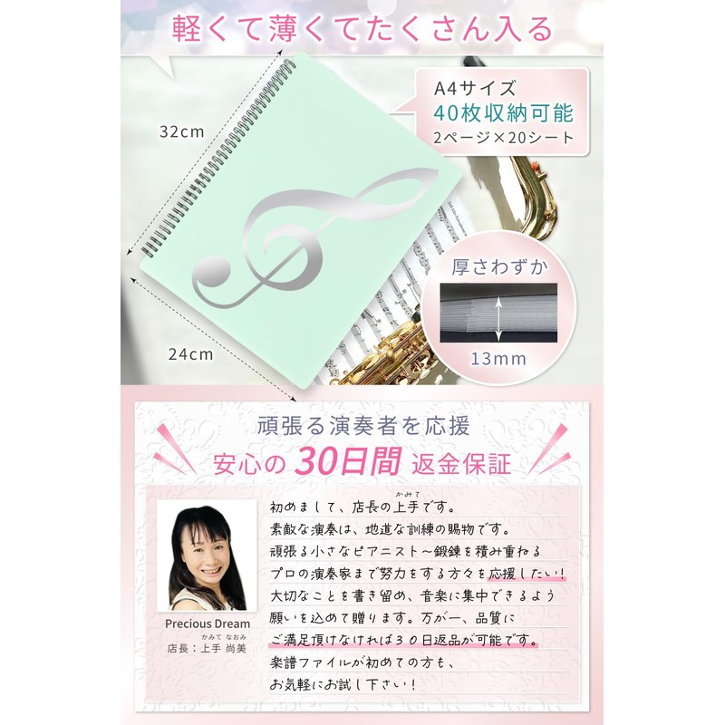 Solf [Supervised by Pitina Branch Manager] Writable Sheet Music File, 2 Sides, 20 Sheets/40 Pages, Brass Band, Piano Band, A4 (Black) x 1