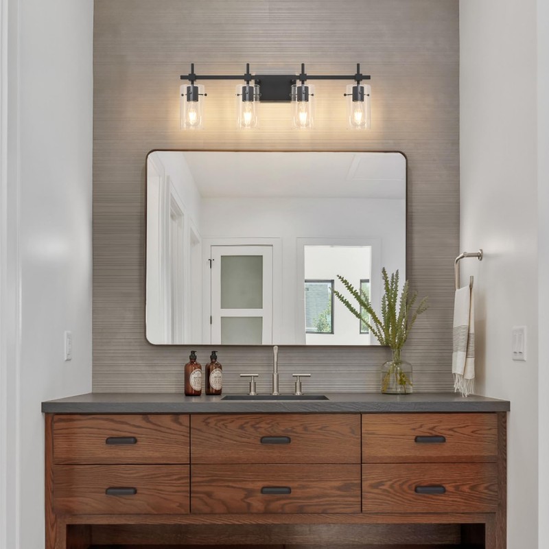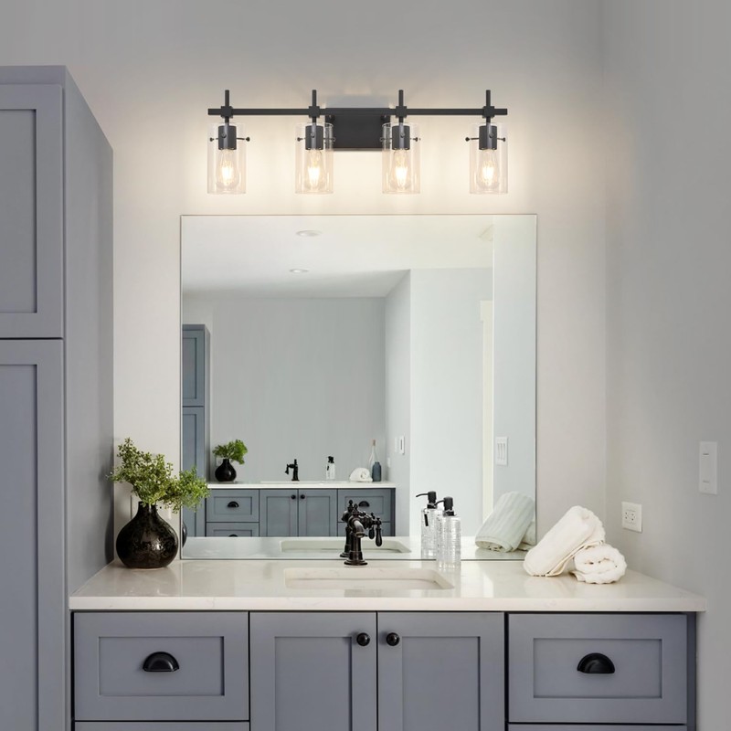 SOLFART 4 Lights Vanity Light Black Bathroom Vanity Lights Over Mirror Vanity Lights for Mirror Bathroom Light Fixture