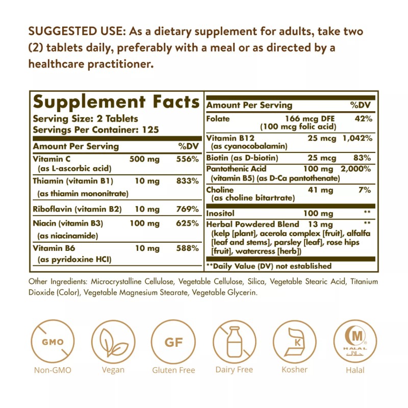 Solgar B-Complex with Vitamin C Stress Formula 250 Tablets
