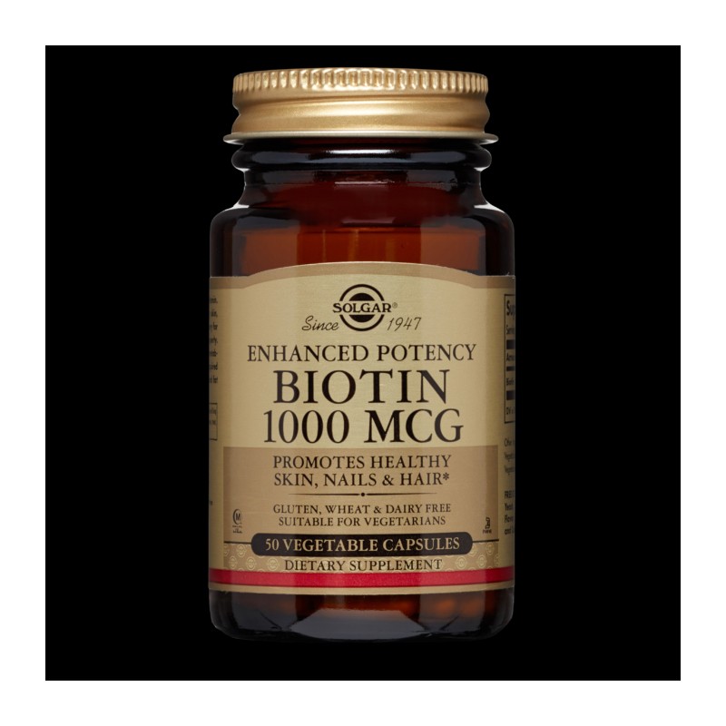 SOLGAR BIOTIN 1000μg, PROMOTES HEALTHY SKIN, NAILS& HAIR 50CAPSULES
