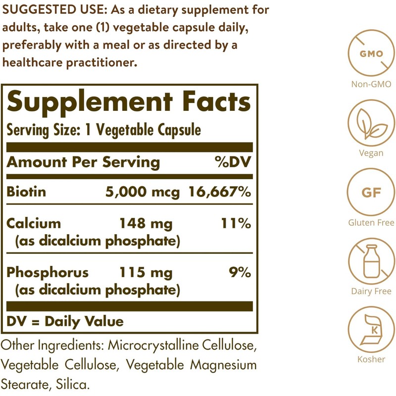 Solgar Biotin 5000 μg Vegetable Capsules - Pack of 100