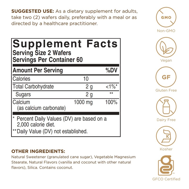 Solgar Chewable Calcium 500 mg - 120 Wafers, Pack of 3 - Promotes Musculoskeletal Health - Non-GMO, Vegan, Gluten, Wheat & Dairy Free, Kosher - 180 Total Servings