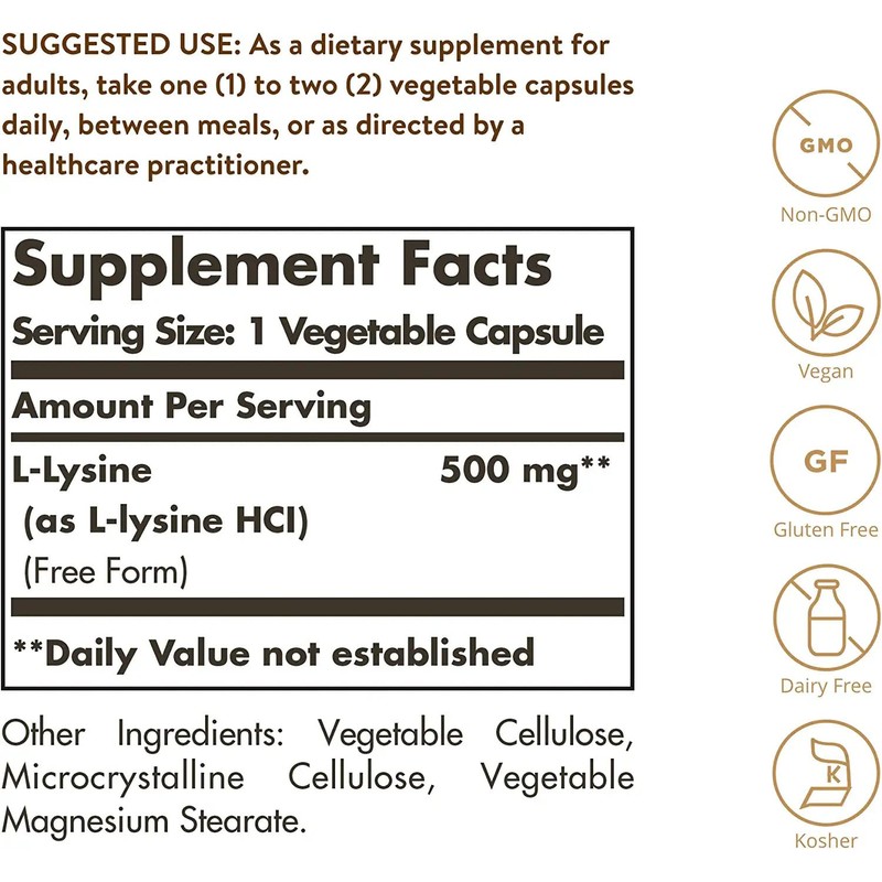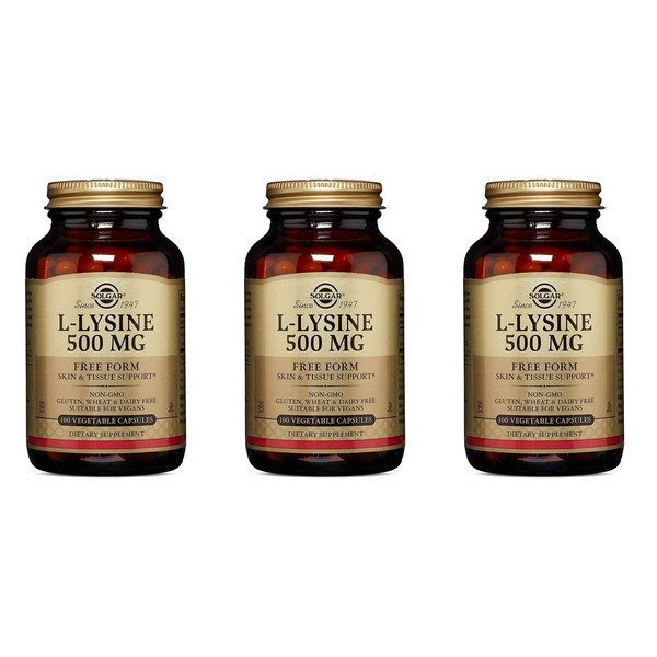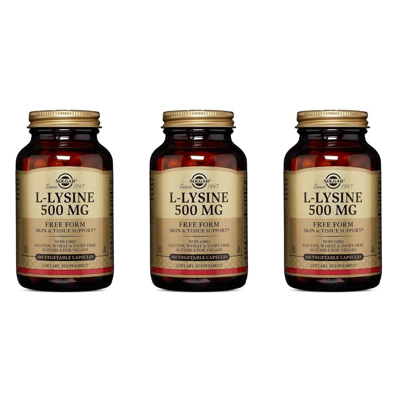 Solgar L-Lysine 500 mg Vegetable Capsules, 100 V Caps 500 mg(Pack of 3)