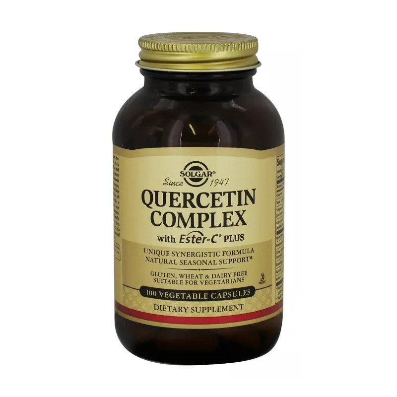 Solgar Quercetin Complex includes the important bioflavonoid Quercetin in a synergistic formula with Ester-C Plus and Bromelain to provide unique antioxidant protection as well as natural seasonal support. Quercetin is found in onions and other foods. It possesses antioxidant properties which help to stabilize cell membranes.